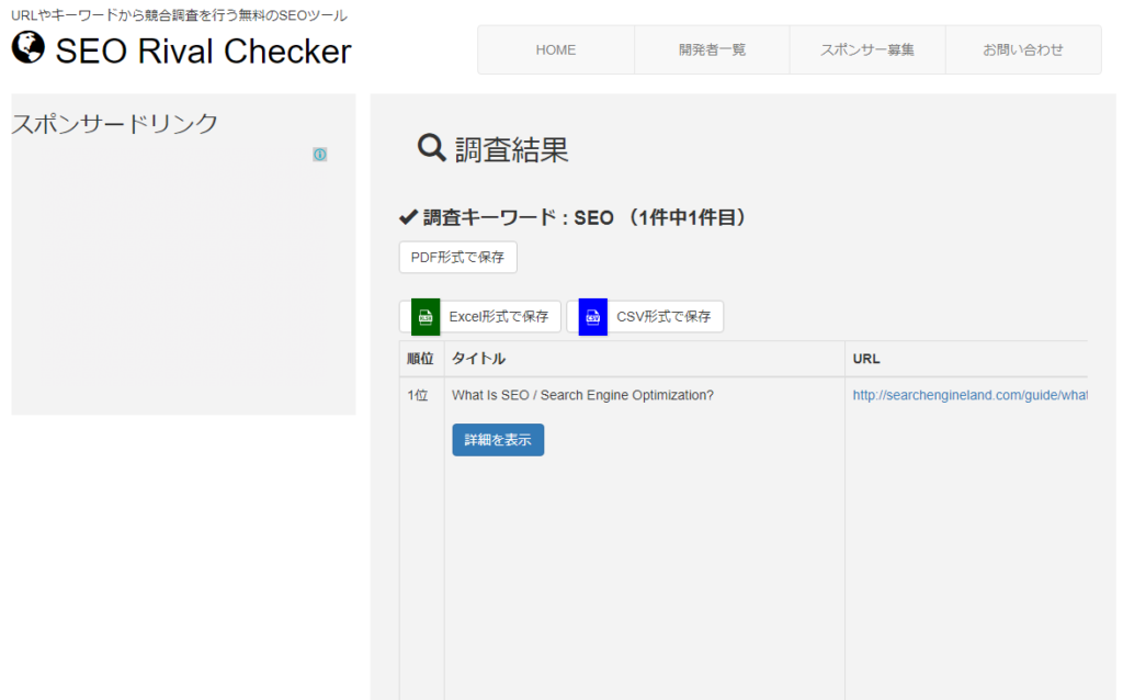 また、1サイトだけをピックアップして見やすく表示してくれる機能もつけてみました。下の画像のように、一覧性が高い表示で快適に他サイトの調査ができます。