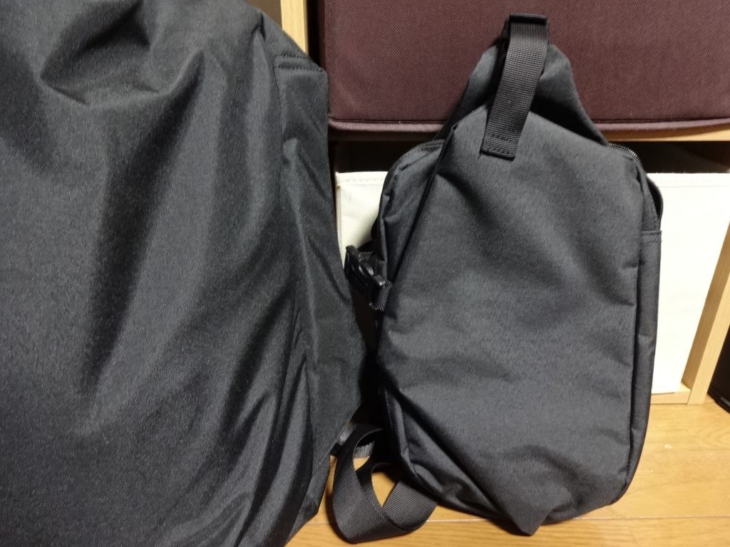 なんとこのリュックの構造に似たボディバッグを見つけてしまい、それも人柱のつもりで思い切って買ってしまいました。こんな買い物するつもりなかったのですがね。