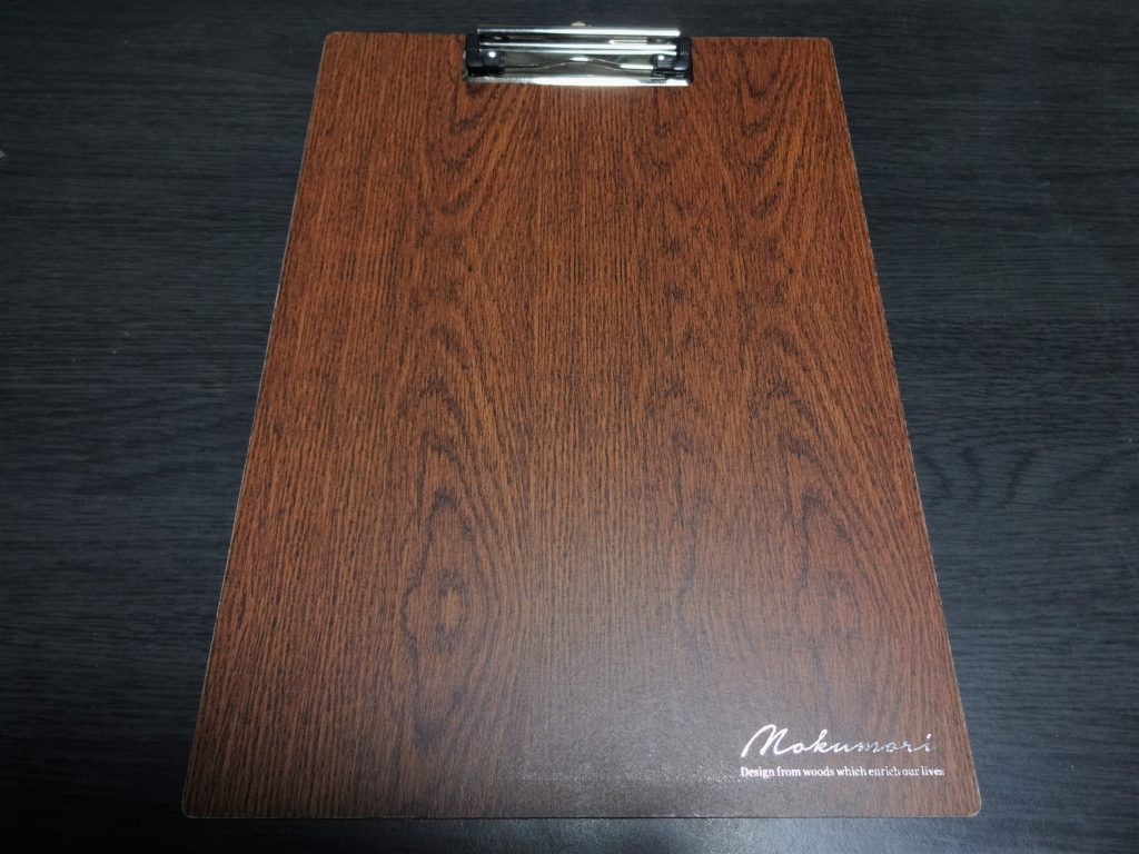 自分は、都内のダイソーで購入した木目柄のクリップボードを使っています。