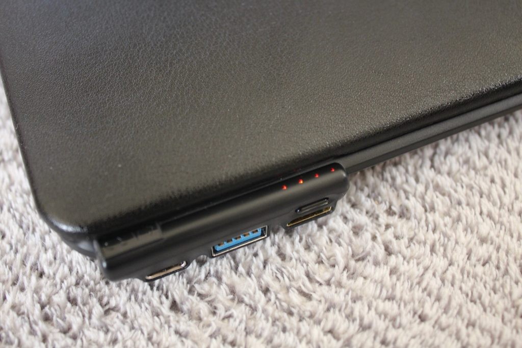 これめちゃめちゃ便利で、このコンパクトな四角の中にフルサイズのHDMI、VGA、USB×3に加え、LAN端子、充電しながら使うためのType-C端子が付いていたりと充実しています。