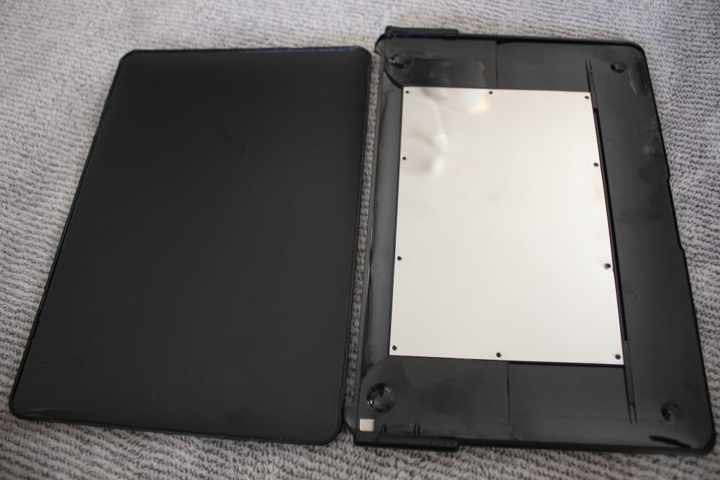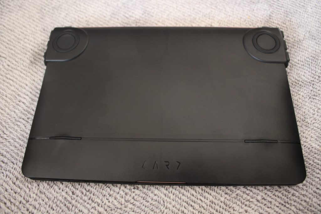 このカバーを装着した途端にmacbookの堅牢性が向上し、元の貧弱なすべり止めとは大きく違った「ノンスリップリングタイプラバー」という大きなすべり止めで机にがっつりホールドできます。