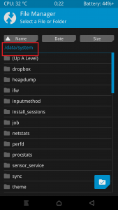 8. ディレクトリを選択して/data/systemというパスに飛びます。